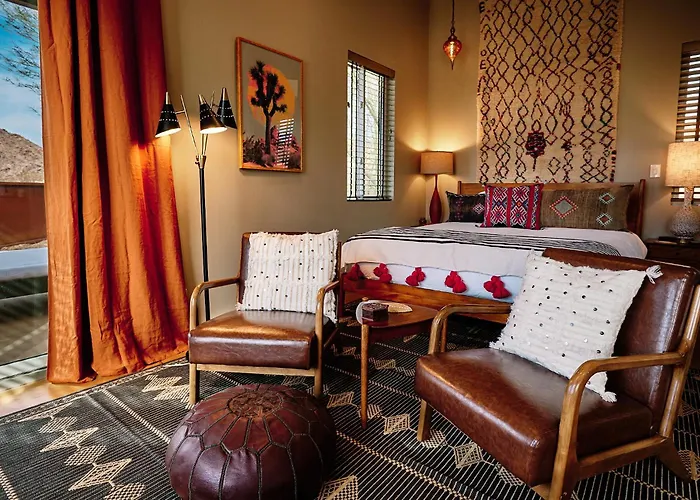 Doté d'un jardin pour vos loisirs, Villa Sacred Sands - Lobo Luna est situé à moins de 25 minutes de marche du parc national de Joshua Tree. Dotée du Wi-Fi et d'un parking privé gratuit, la villa se trouve à moins de 6 km de World Famous Crochet Museum.